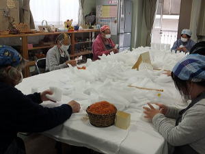 ■作業内容 さをり織り、手芸品製作、フルーツキャップ折り、農園作業等をスタッフと一緒に行い、スキルアップを図ります。(利用者の方は自由に作業を選択できます。)